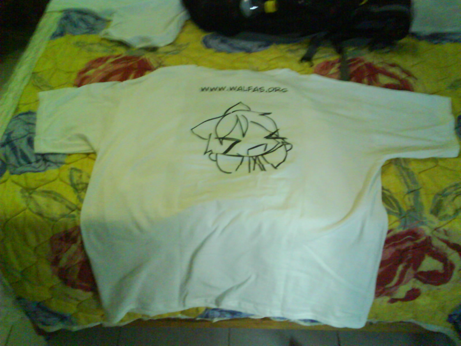 A few days ago, Sax showed me some images of a Walfas shirt he made (with permission, of course), and I sorta forgot to post about it until just now. Here’s a few more shots. Anyway, this reminded me of how a bunch of other people in the past said they’d like Walfas T-shirts (or Walfas merchandise of some sort). I know some people would definitely be interested in something like this, so I did some reading on T-shirt selling forums about different print-on-demand companies, and thought maybe if I do make Walfas shirts available, I might do it on Zazzle or something.